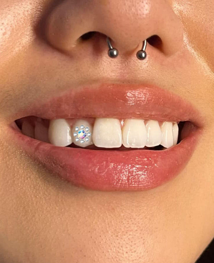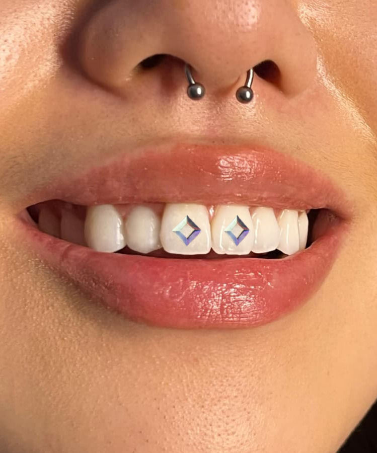 Single shaped crystal Tooth Gem (star, heart, rectangle, square etc.), including application